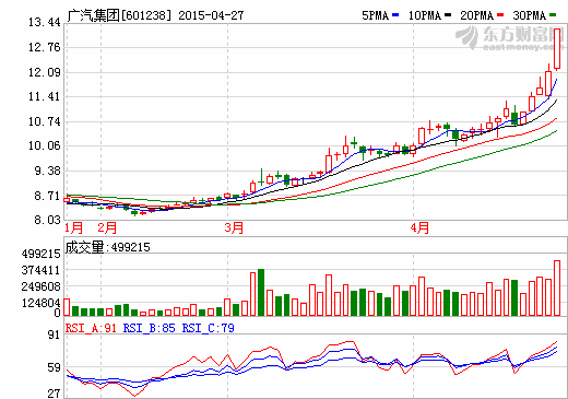 27日新能源汽車概念股盤后統計 廣汽集團漲9.98%