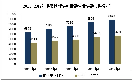 2013-2017年磷酸鐵鋰供需關系分析