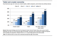 美國皮尤研究中心的最新報告顯示,今年9月約有35%的美國人擁有平板電腦,而擁有電子閱讀器的比例也達到24%。 平板電腦的擁有率近年來大幅提升,2012年11月僅為25%,2011年12月甚至只有10%。這...