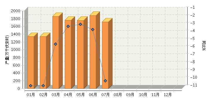 2015年1-7月全國鉛酸蓄電池行業累計完成產量同比增長-6.43%。其中:7月份完成產量同比增長-10.01%。...