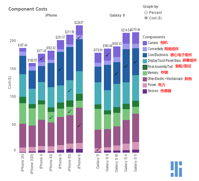 蘋果三星手機(jī)硬件構(gòu)成:iPhone 6成本高于S5