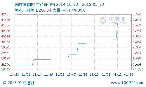 • 碳酸鋰市場上揚行情已全面啟動 同比上漲7.28% 日期:2015-02-14 09:42:39 點擊:242 好評:0