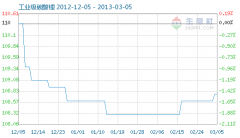 3月5日工業級碳酸鋰商品指數為108.76,與昨日持平,較周期內最高點112.10點(2012-11-04)下降了2.98%,較2012年01月05日最低點98.94點上漲了9.93%。(注:周期指2011-09-01至今) 工業級碳酸鋰商品指數自...