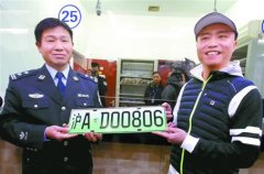 12月1日上午9時,位于哈密路的上海車管所一分所,上海市民吳先生在選號機上選出了上海首塊新能源新版汽車號牌。在他看來新的綠色車牌比想象中的更好看。“挺酷的,我覺得和別人不一樣?!?..