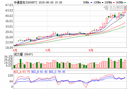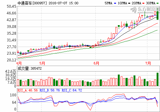 6日新能源汽車概念股盤后統計 中通客車漲幅5.40%