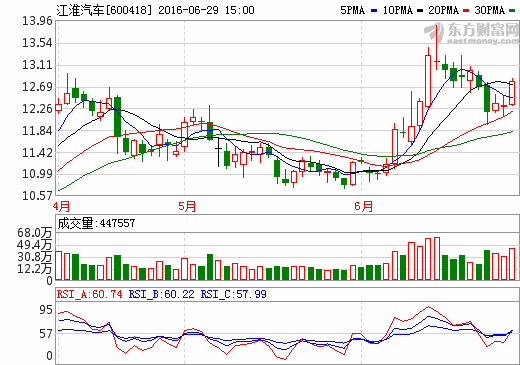 29日新能源汽車概念股盤后統計 江淮汽車漲幅3.82%