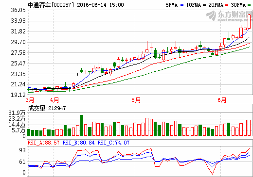14日新能源汽車概念股盤后統計 中通客車漲幅8.28%