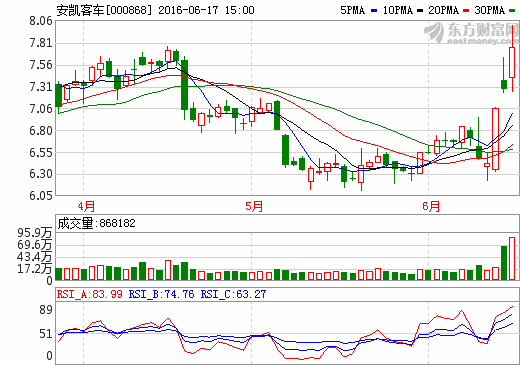 17日新能源汽車概念股盤后統計 安凱客車漲幅6.59%