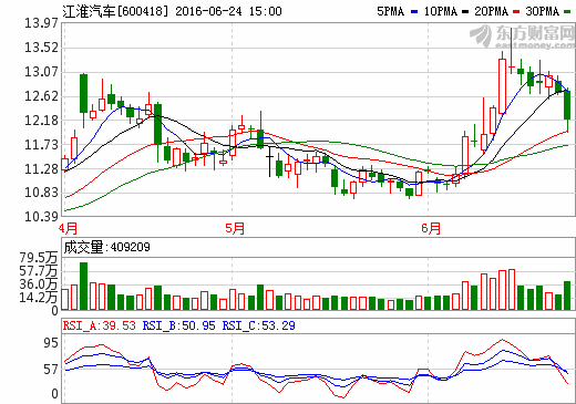 24日新能源汽車概念股盤后統計 江淮汽車跌幅3.87%