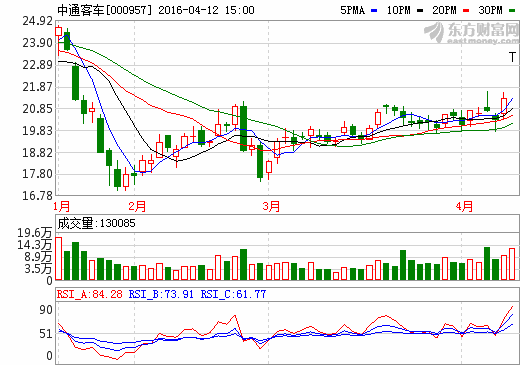 12日新能源汽車概念股盤后統計 中通客車漲停...