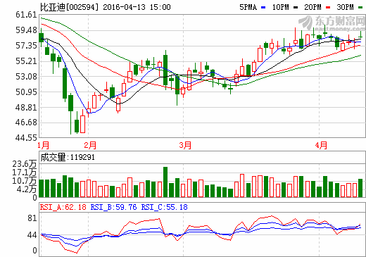 13日新能源汽車概念股盤后統計 比亞迪漲幅1.19%