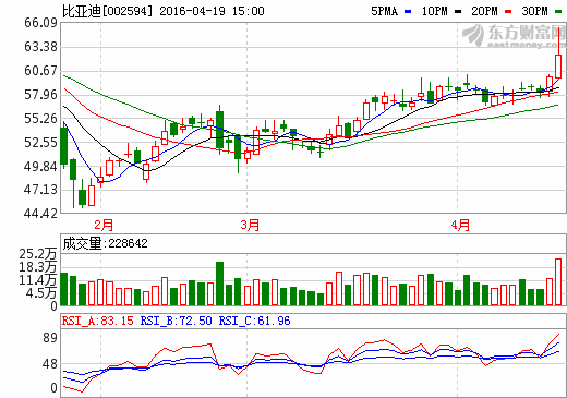 19日新能源汽車概念股盤后統計 比亞迪漲幅4.03%
