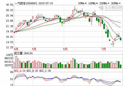15日新能源汽車概念股盤后統計 一汽轎車跌停...
