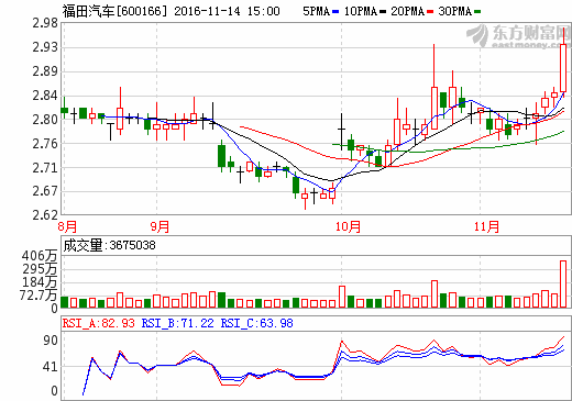 15日新能源汽車概念股盤后統(tǒng)計 福田汽車漲幅6.80%