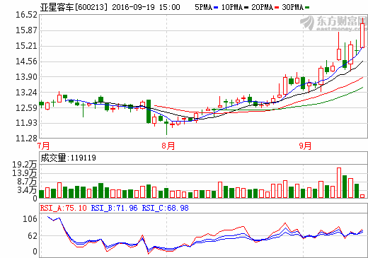 19日新能源汽車概念股盤后統計 亞星客車漲幅7.60%