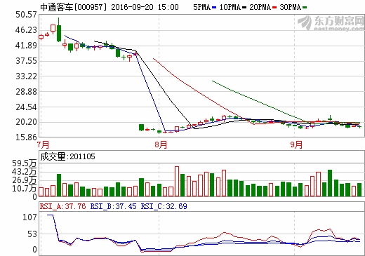 20日新能源汽車概念股盤后統計 中通客車跌幅1.89%...