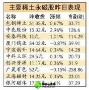 國土部將制定稀土礦利用“紅線” 經過持續下跌,稀土股近期比較活躍,包鋼稀土昨日再度跑贏大盤。而記者從國土部了解到,監管層今年將為稀土礦制定利用“紅線”。業內人士表示,未來...