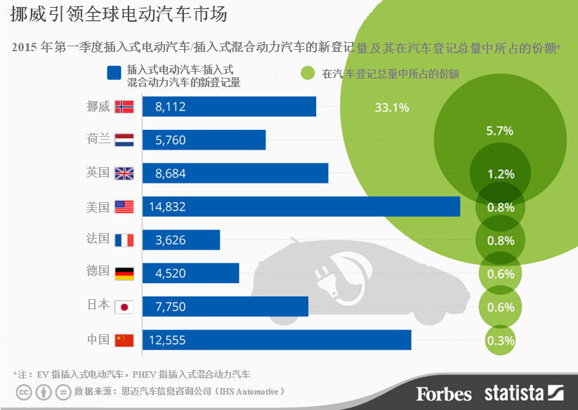 2015年一季度,挪威售出了8112輛插電式電動汽車和插電式混合動力汽車,占該國當季汽車登記總量的三分之一。...