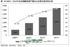 2012年中國鋰電正極材料產量約為3.6萬噸,而2013年則達4.5萬噸,同比增長25%。正極材料所占市場份額來看,雖然LCO的產量絕對值繼續增長,但由于三元材料(NCM)的產量增加更為迅速,因此LCO產量占正極材料總體的比重仍有下降。...
